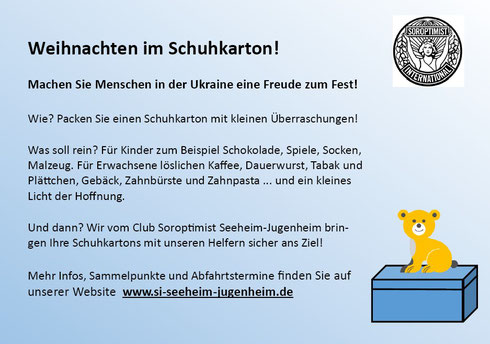 Der Club Soroptimist International Seeheim-Jugenheim verleiht anlässlich des diesjährigen „Tags der Menschenrechte“ am 10. Dezember die „SI-Menschenrechtstafel“ an Paul Guire aus Bensheim. „Wir würdigen damit zum ersten Mal keine Organisation, sondern einen Privatmann, der sich in vorbildlicher Weise selbstlos engagiert und teilweise auch unter Einsatz seines Lebens Hilfsgüter in die Ukraine bringt“, erläutert Clubpräsidentin Sibylle van de Ree. Weiter...